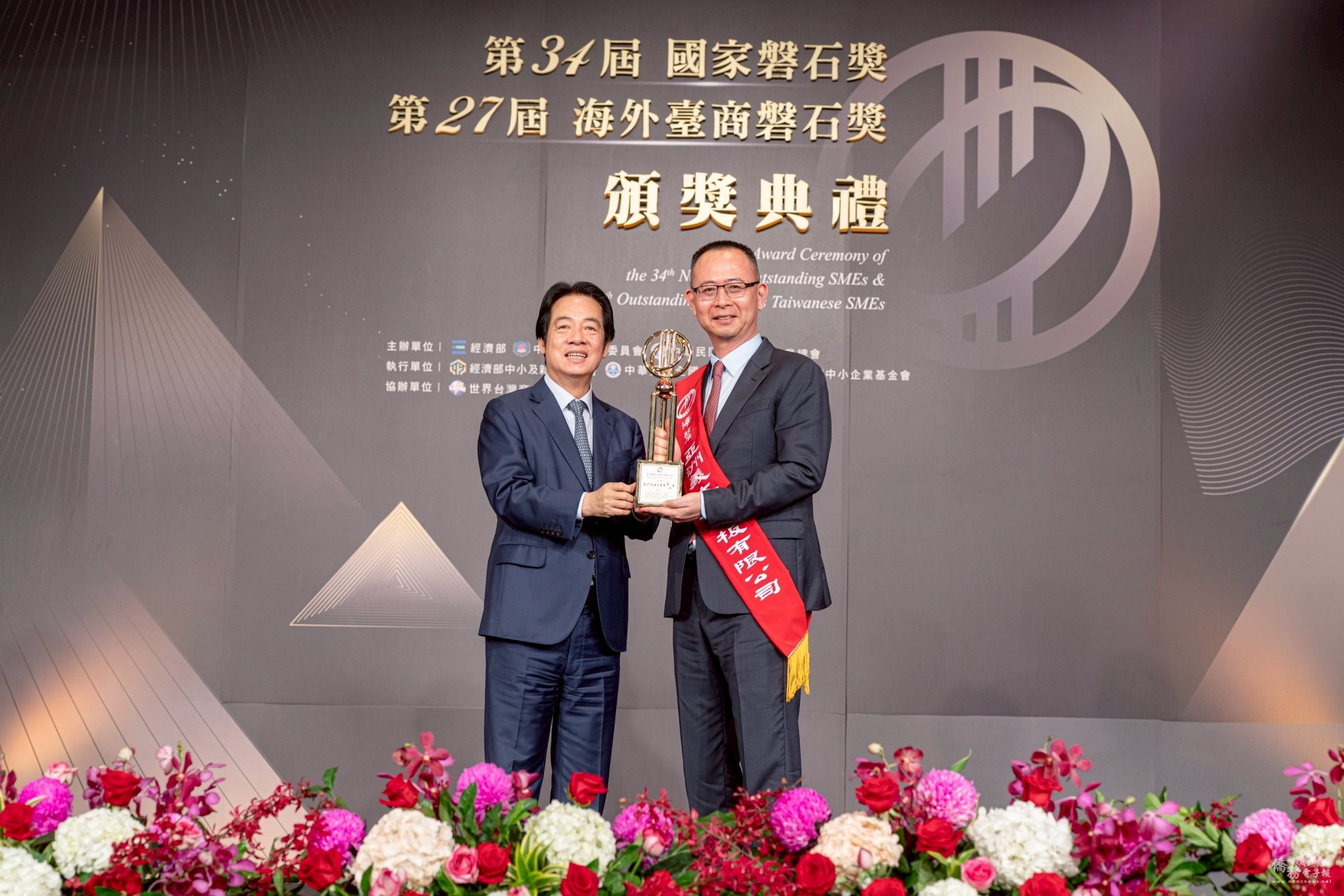 📍 本屆磐石獎頒獎典禮於 10 月 27 日隆重舉行,由經濟部中小及新創企業署、中華民國全國中小企業總會主辦,世界臺灣商會聯合總會協辦,並由經濟部及僑務委員會共同指導,多位政商界貴賓蒞臨祝賀,場面盛大。