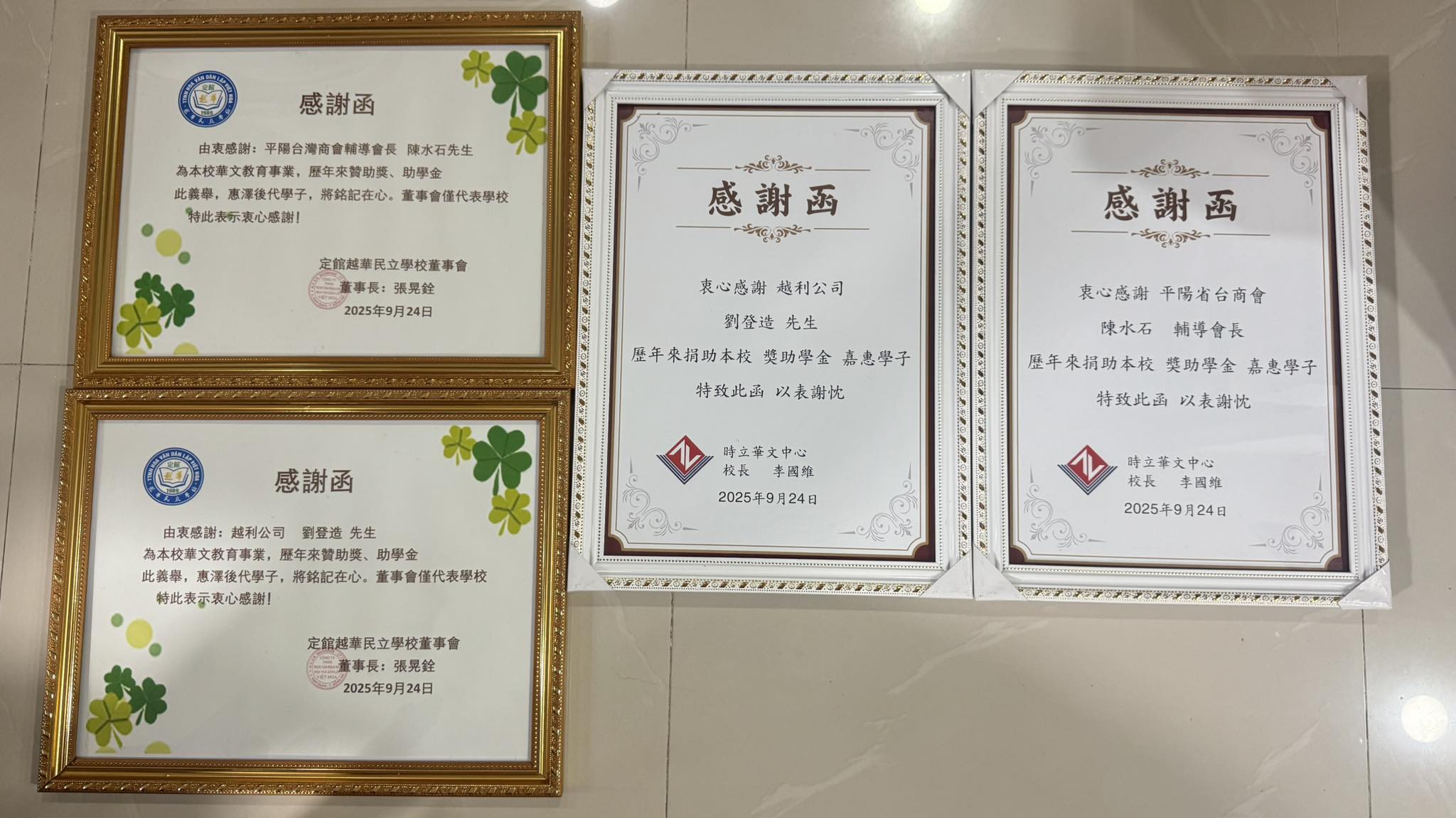 9 /24 本會副會長 #陳靜璿 聯同輔導會長 #陳水石,號召眾台商菁英,為同奈省越華民立學校及時立華文學校捐贈獎助學金!