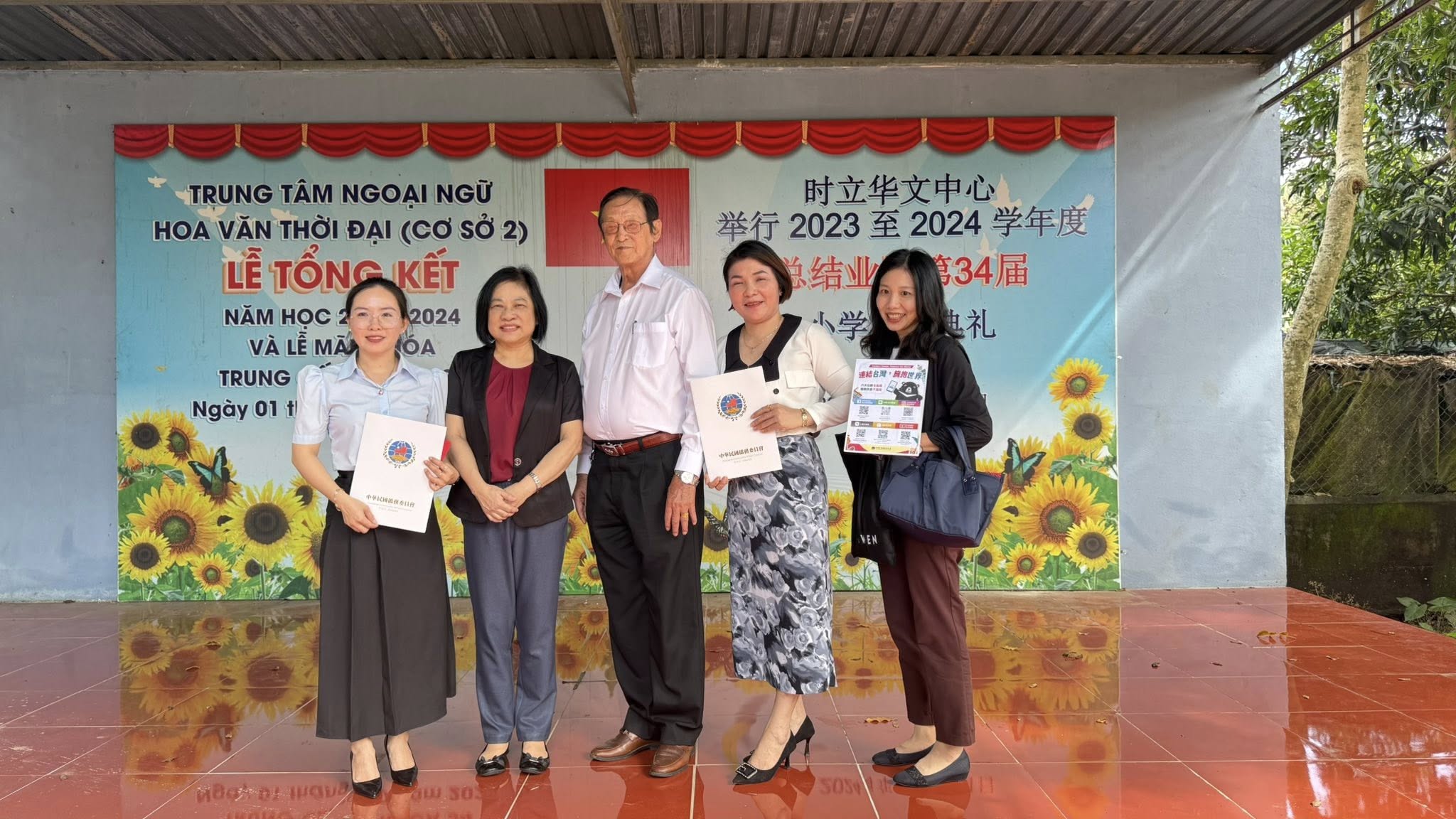 並邀請 駐胡志明市辦事處僑務組組長 #文君妃 與秘書 #陳珮語 親臨現場,見證這份教育愛心!